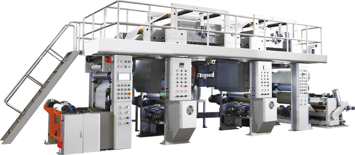 用于卷煙紙、手卷煙紙的壓花涂布(涂膠)生產。 整機PLC伺服變頻控制。收放卷浮自動張力,壓花采用三輥壓花機構液壓加壓方式,涂膠采用柔版涂布方式,收放卷氣動擺臂式裝卸料。